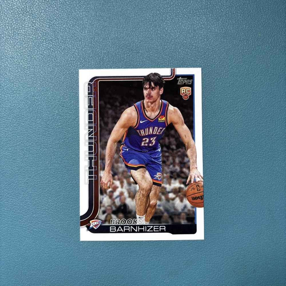 Carta Rookie Card (RC) oficial de Brooks Barnhizer, guard de los Oklahoma City Thunder y uno de los prospectos jóvenes conocidos por su juego completo en ambos lados de la cancha.