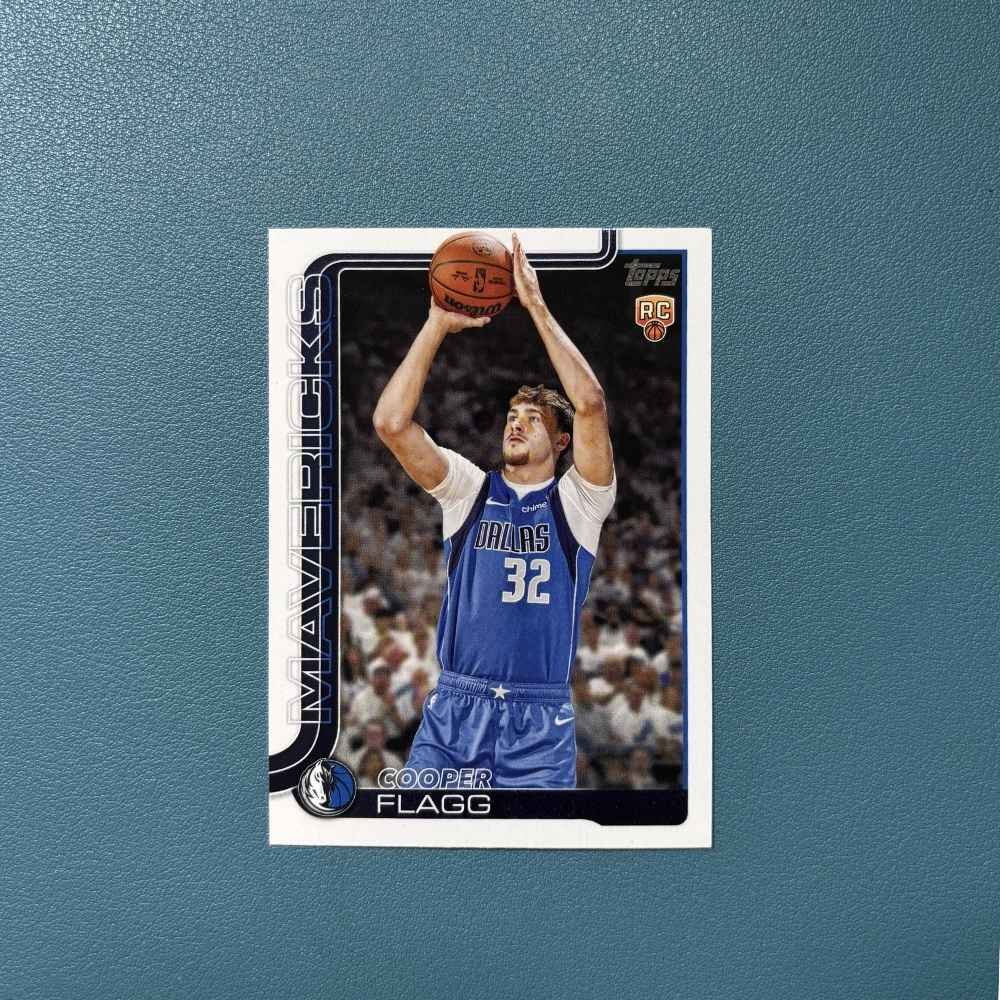 Carta Rookie Card (RC) oficial de Cooper Flagg, forward de los Dallas Mavericks, perteneciente a la colección Topps Flagship 2025–2026.
